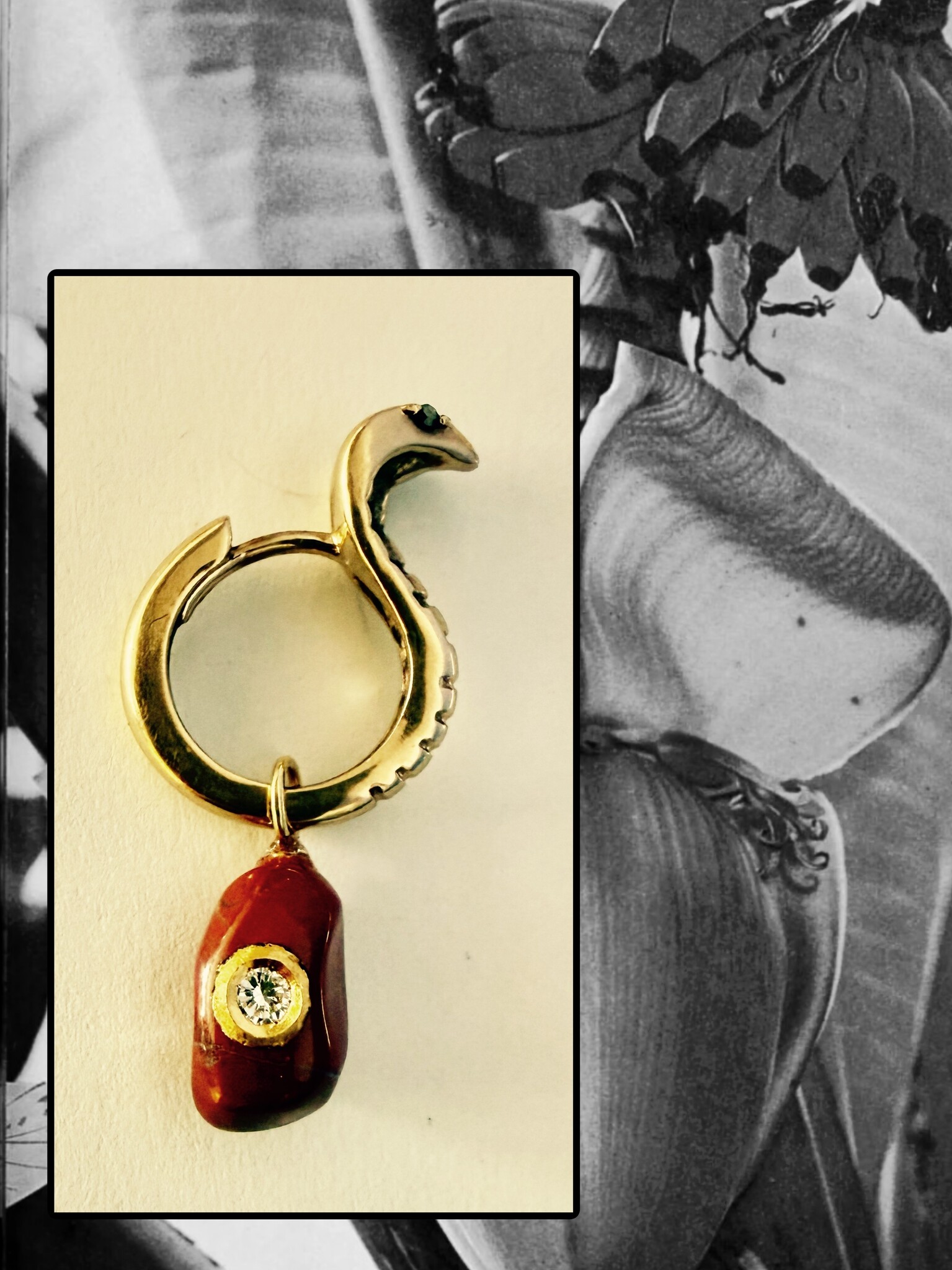 *Jaspis polished stone with a diamond inlay* 18. art Gold*lenght*width*