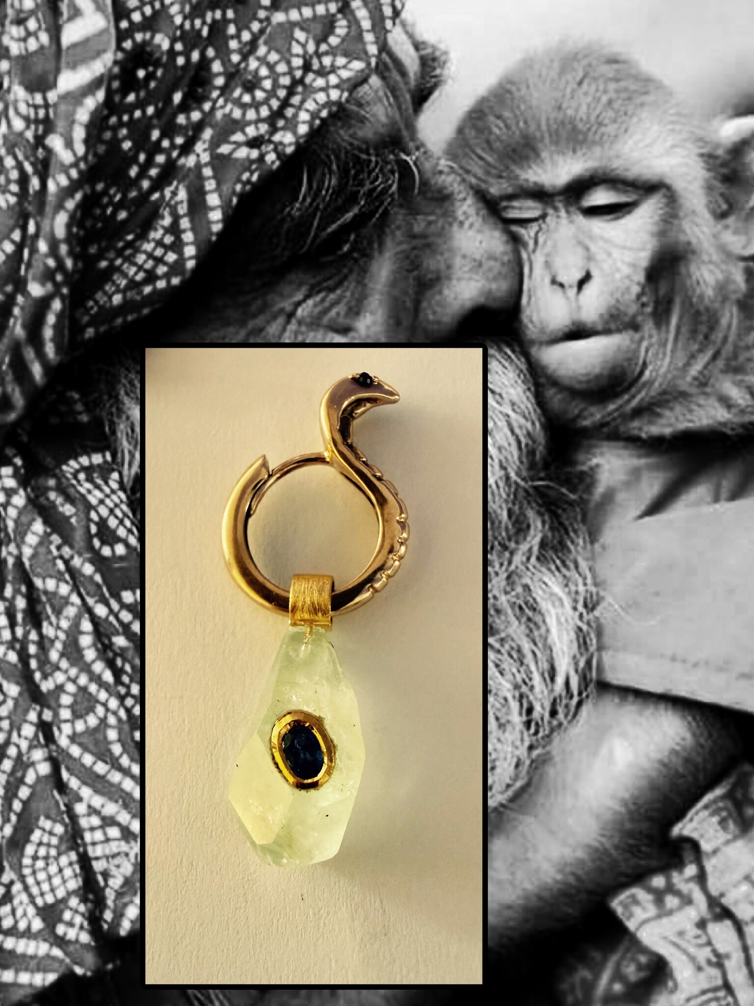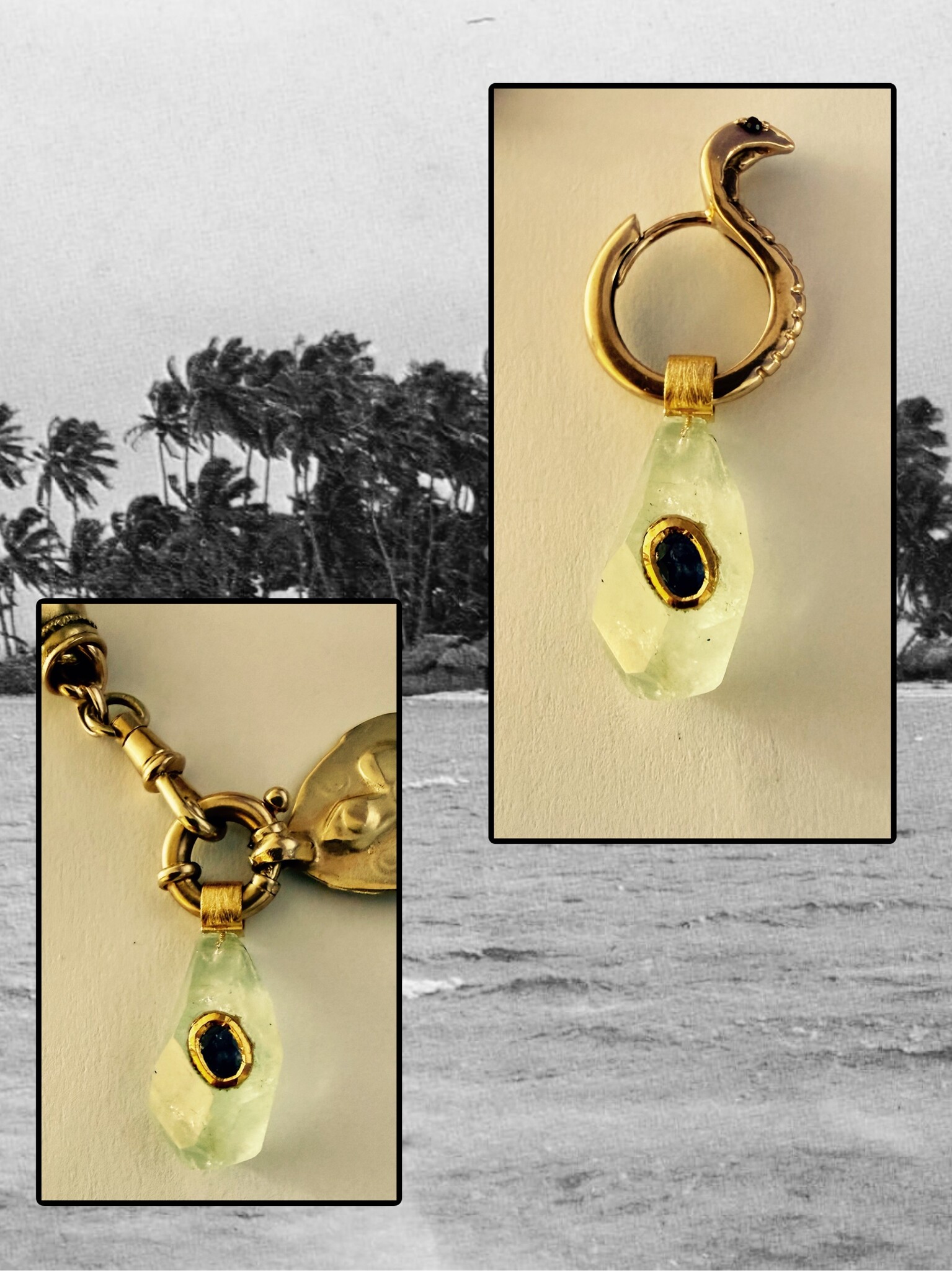 *Rough unpolished Aquamarine*Sapphire inlay *18 art gold*lenght*width*